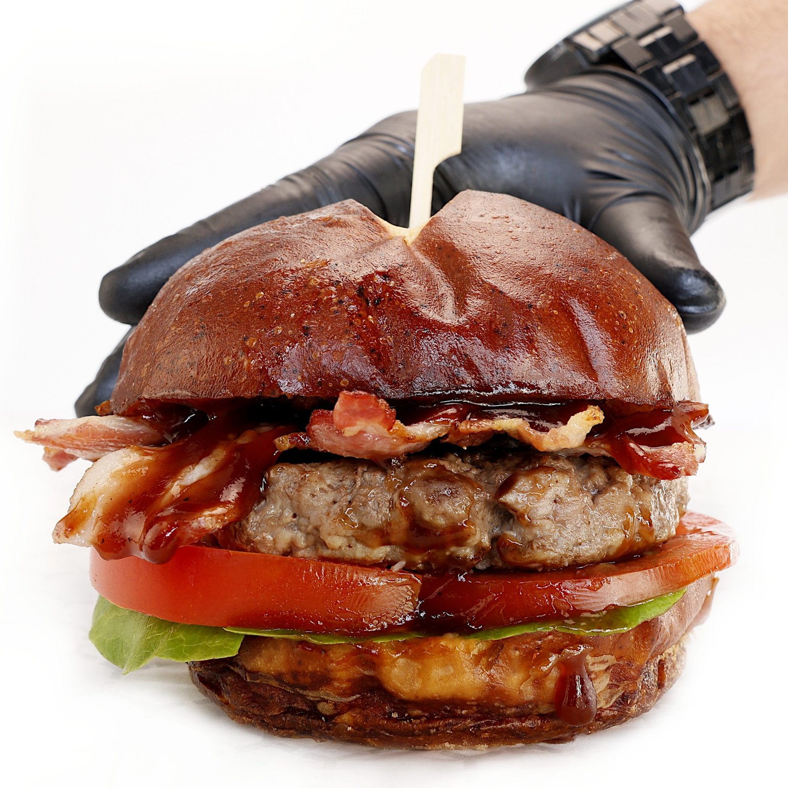 La hamburguesa se sirve montada en un suave y esponjoso pan pretzel, que complementa a la perfección la robustez de la carne. A esto le hemos agregado una generosa porción de queso cheddar derretido, lechuga fresca y tomate jugoso, creando una combinación perfecta de texturas y sabores. Cada ingrediente está cuidadosamente elegido para ofrecer una experiencia de sabor que deleitará tu paladar y dejará huella en tu memoria gustativa.